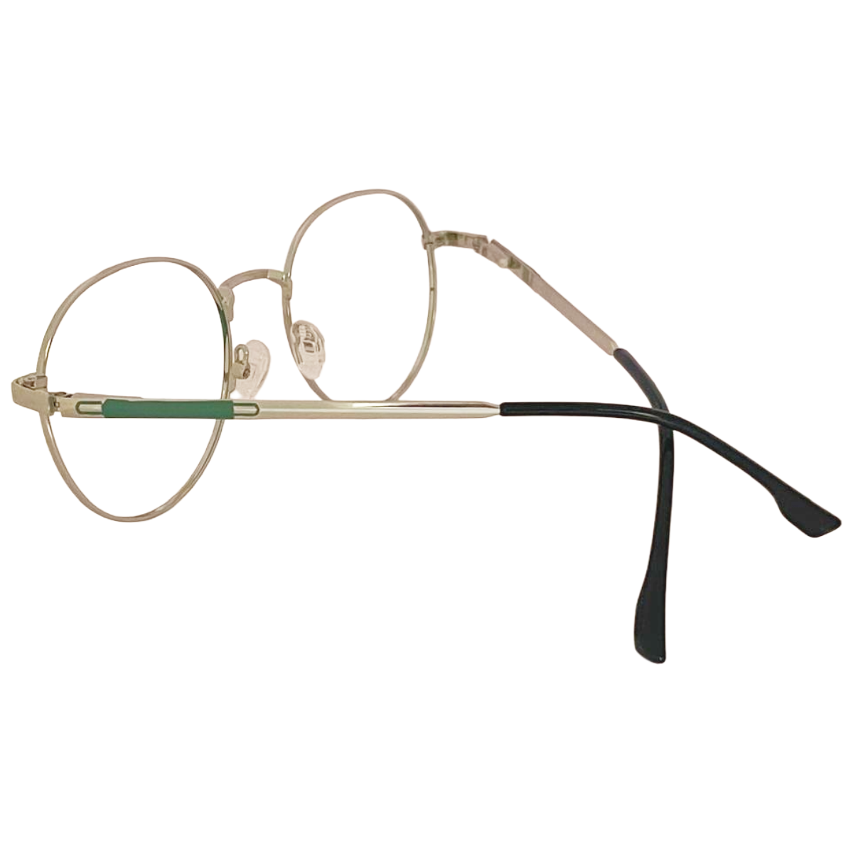 Cliqlens Full Rim Green, Silver round metal eyeglasses for men and Women
