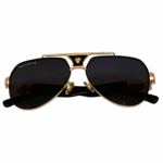 Stylish Golden with Black lens Full Rim Aviator Metal Sunglasses for Men