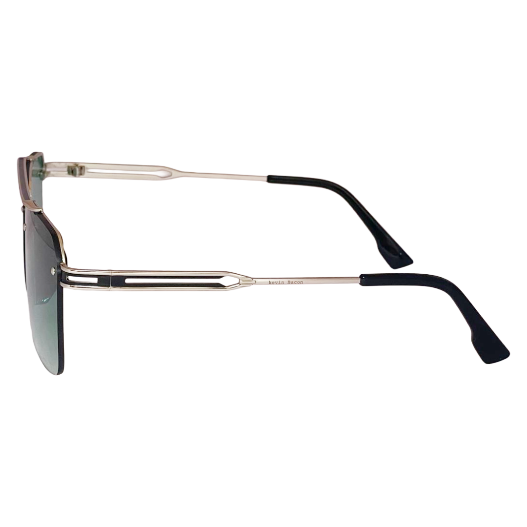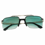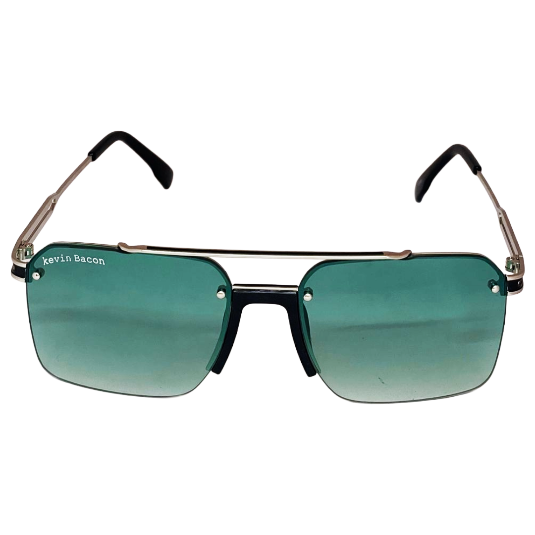 Stylish Silver with Green lens Half Rim Metal Square Sunglasses for Men & Women