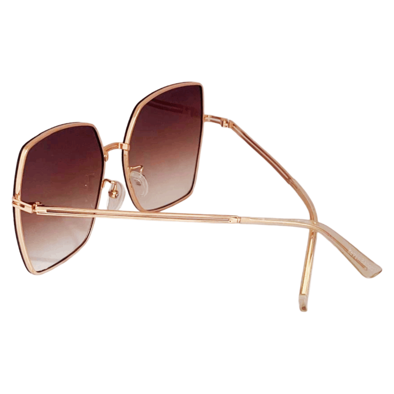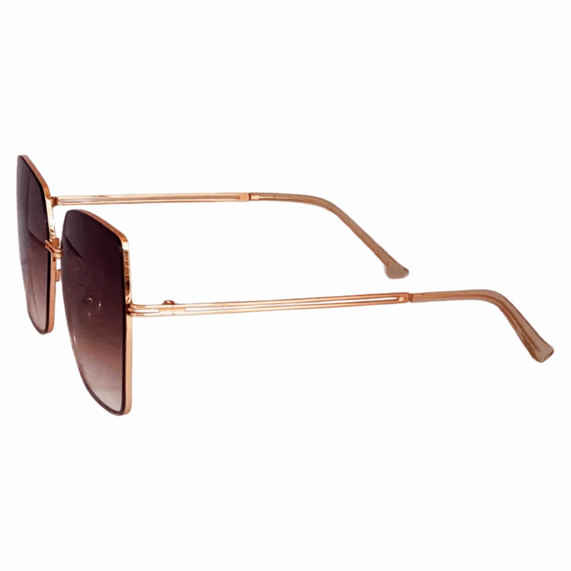 Stylish Golden with Brown Lens Full Rim Square Metal Sunglasses for Women