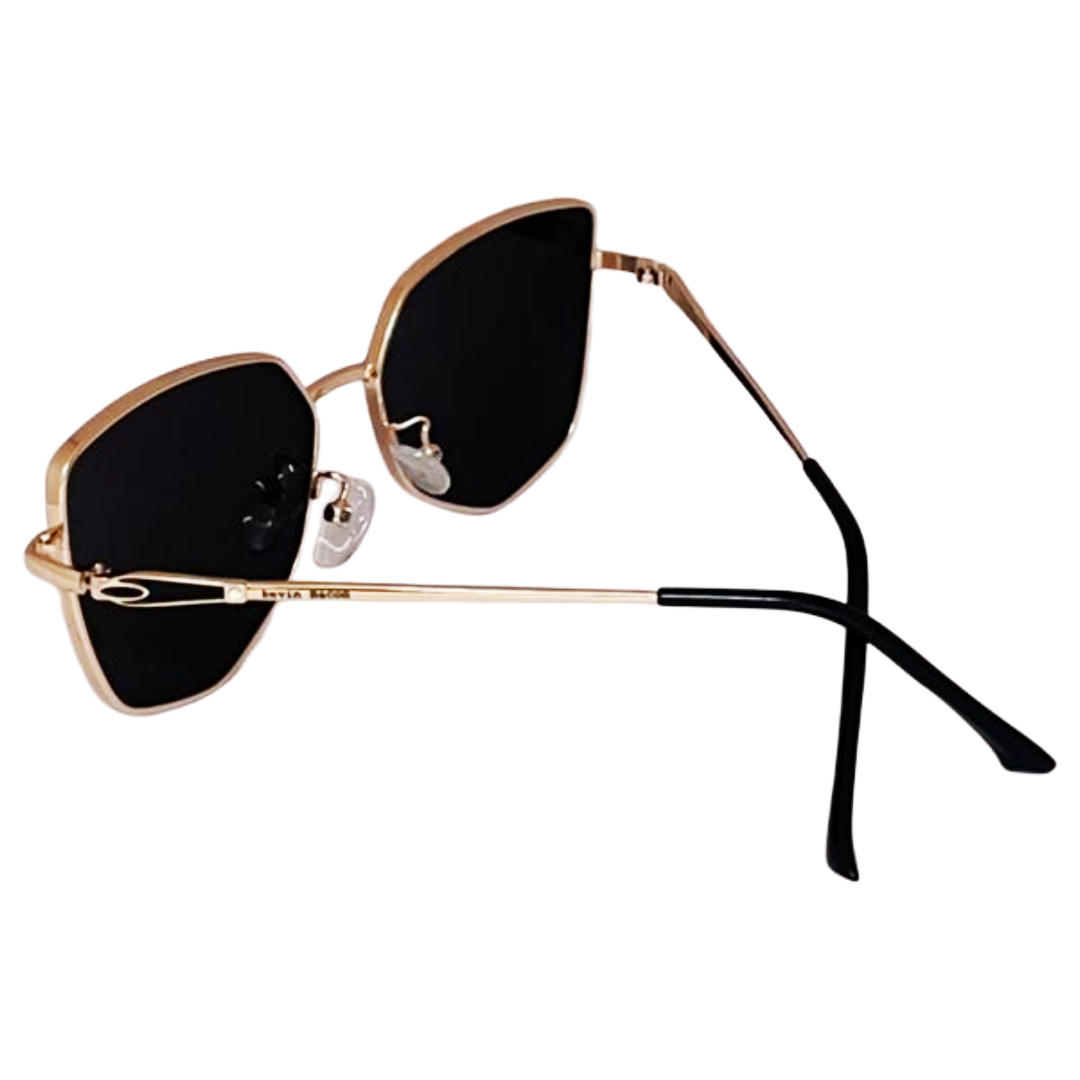 Stylish Golden black with black lens Full Rim Sunglasses Metal Cat-eyed for Women